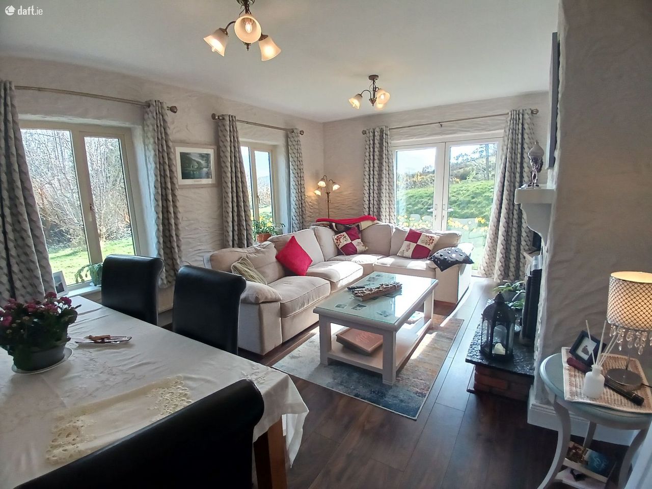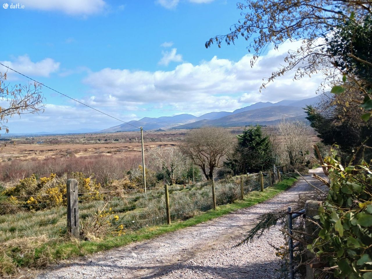 Jim Burns Town & Country Auctioneers are delighted to bring to market Barrys Cross, Gortloughra, Killorglin, Co. Kerry V93 K197 New to Market Viewing Strictly by Appointment Excellent opportunity to purchase a lovely 4 Bedroom Bungalow on an elevated site c. 0.25hectare/0.61acre. The site commands spectacular views of the McGillycuddy Reeks, Strickeen, Gap of Dunloe and surrounding Countryside. Located in the heart of the Reeks District in a quiet country setting only c. 7minutes drive to Killorglin. The property is in immaculate condition throughout with many features; fitted Kitchen with island unit, solid fuel stove with back boiler, oil heating, 4 good size bedrooms, 2 bathrooms, excellent storage in attic area, PVC windows replaced in 2018, walls pumped. Well located to Killarney c. 24km, Tralee c. 31km and Kerry Airport c. 27km. Easy access to Blackstones Bridge and Lickeen Wood c. 8km, Caragh Lake c. 4km, Rossbeigh Blue Flag Beach c. 15km and Cromane Strand c. 13km. Ideally suited for a variety of buyers first time buyer, family home, holiday home. The residence is situated in a tranquil country setting. Within easy reach of Glounagillagh National School, Scoil Mhuire Killorglin, Killorglin Community College and Intermediate School Killorglin. Accommodation: Porch, Hallway, Sitting Room, Kitchen/Dining Room, 4 Bedrooms, Bathroom, Toilet/Shower, Utility Room, Attic area floored. Services: Well Water, Septic Tank, Electricity, Oil Heating. About Killorglin Killorglin occupies a scenic position overlooking the River Laune and backed by the dramatic slope of McGillycuddy Reeks. It is situated at the beginning of the World famous Ring of Kerry, part of the Wild Atlantic Way. Killorglin is the gateway to the Reeks District. Killorglin is an attractive place to live, work, and do business. It has good transport links, a vibrant community, social life and great cultural heritage. Killorglin is home to a variety of business across a range of sectors including Aqua Design, Astellas, Fexco, RDI Hub, Temler and Tweak. Room Details: Porch: 1.558 x 2.28 With Chinese slate flooring, high ceiling, double doors into Hallway. Hallway: 10.19 x 1.57 With coving, solid oak flooring, storage under stairs Hot-Press: Shelved with immersion. Toilet/Shower: 2.47 x 1.77 With WC, WHB, electric shower, tiled flooring and tiled walls. Bedroom1: 2.57 x 3.52 (Front Bedroom) With carpet flooring. Double Bedroom Bedroom 2: 2.57 x 3.52 (Front Bedroom) With carpet flooring. Double Bedroom Bedroom3: 3.17 x 3.63 (Front Bedroom) With pine flooring, telephone point. Double Bedroom Bathroom: 2.33 x 2.61 + (1.08 x 0.72) With WC, WHB, Bath, tiled flooring and tiled wall, Built in units. Bedroom 4: 3.18 x 3.64 (Back Bedroom) With timber flooring. Double Bedroom Sitting Room: 5.46 x 3.97 (Front View) Views of McGillycuddy Reeks With timber flooring, raised fireplace, solid fuel stove. TV point, double doors to garden area, telephone point. Kitchen/Dining Room: 4.63 x 4.41 Views of McGillycuddy Mountains With tiled flooring, tiled Kitchen surround, built in eye and ground level presses, Belfast sink unit, island unit with breakfast counter, built in oven/ gas hob/extractor, double patio door. Utility: 2.11 x 2.32 With tiled flooring, built in units, back door. Attic area: 14.98 x 3.926 With flooring, access via staircase Outside: Garage/Shed: 4.31 x 7.21 (3.046 x 1.395) With electricity, block built, double doors, corrugated roof. Open Shed: 3.077 x 5.69 With electricity, block built, corrugated roof. Utility Shed: 1.422 x 1.24 With electricity, tap, water pump. Shed: 3.148 x 2.085 (1.232 x 1.234) With firebird oil boiler (Recently replaced), electricity. Outside: Gravel driveway, Outside lights, concrete back yard. Raised flower beds Patio area (Brick Patio) Features: Immaculate 4 Bedroom Bungalow Elevated site Spectacular views of McGillycuddy Reeks, Stricken, Gap of Dunloe and surrounding countryside. Site area House south facing Convenient to Killorglin Town c. 5.7km Ideally suited for variety buyers: first time buyers, family home, holiday home. Heating oil heating (boiler recently replaced) PVC double glazed window and doors (replaced 2018) Boru Solid fuel stove with back boiler Unique site DISCLAIMER: Jim Burns & Co. Ltd for themselves and for the vendors or lessors of the property whose agents they are, give notice that: (i) The particulars are set out as a general outline for the guidance of intending purchasers or lessees, and do not constitute part of, an offer or contract. (ii) All descriptions, dimensions, references to condition and necessary permissions for use and occupation, and other details are given in good faith and are believed to be correct, but any intending purchasers or tenants should not rely on them as statements or representations of fact but must satisfy themselves by inspection or otherwise as to the correctness of each of them. (iii) No person in the employment of Jim Burns & Co. Ltd has any authority to make or give representation or warranty whatever in relation to this property
